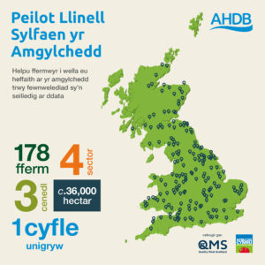 Mae wyth fferm yng Nghymru wedi’u dewis i gymryd rhan yn y prosiect peilot, yn seiliedig ar ffactorau yn ymwneud â lleoliad daearyddol, topograffi, y math o bridd a systemau ffermio. Byddant yn mesur y canlynol:
